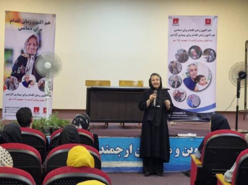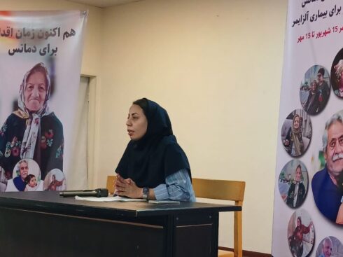 بعد از اجرای این عزیزان، نماینده انجمن، سمیه برزگر، کارشناس ارشد روانشناسی در سالن اجتماعات سرا برای ۱۰۰ نفر از این گروه در خصوص تعریف دمانس و بیماری آلزایمر، عوامل خطر، روش های تشخیصی، علائم هشدار دهنده ، مراحل بیماری، مداخلات مراقبتی و عوامل پیشگیری کننده و… سخنرانی نمود.